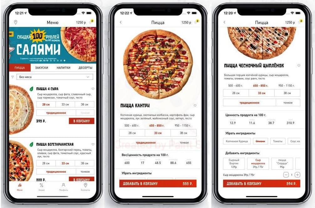 Мобильные приложения для заказа еды сети пиццерий