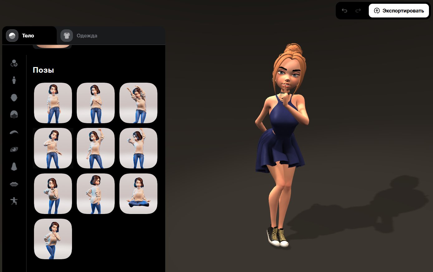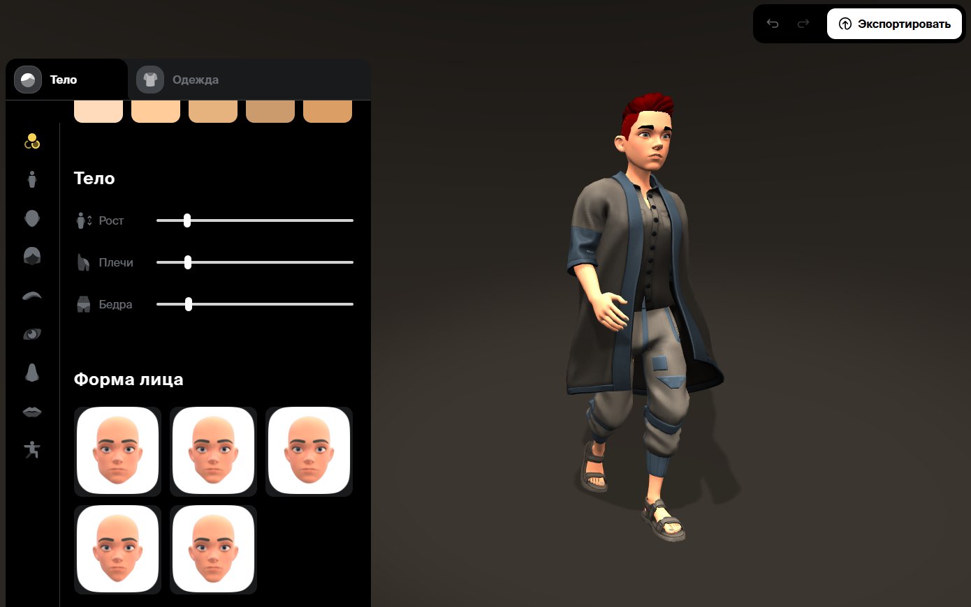 Редактор, позволяющий создавать виртуальных аватаров, менять их внешность, предметы одежды и окружение. Работает на самом слабом железе из парка SberDevices.