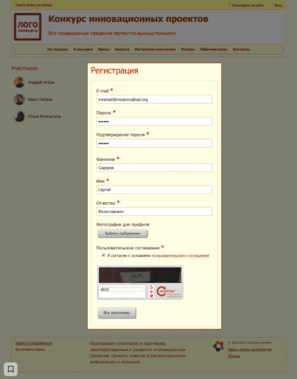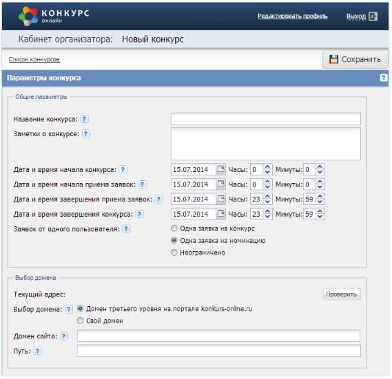 Разработка сервиса для организации и проведения конкурсов, соревнований, олимпиад, опросов любой тематической направленности и проведения экспертиз.