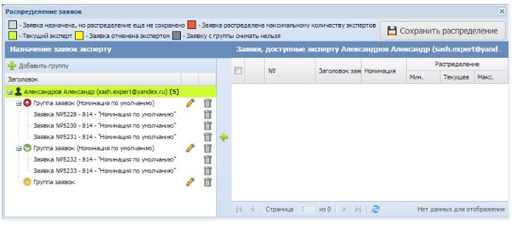 Автоматизированный сбор заявок по различным направлениям конкурса