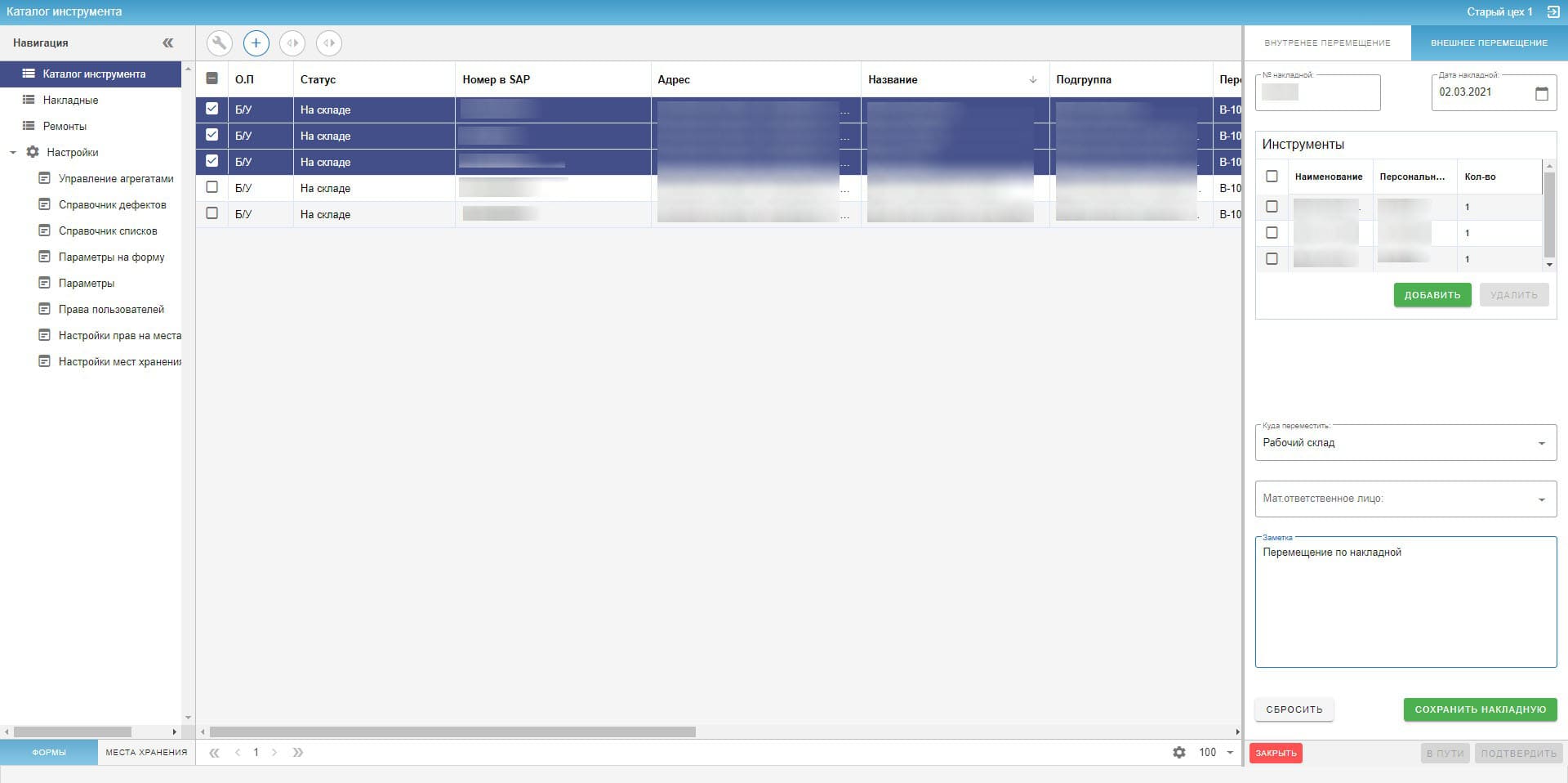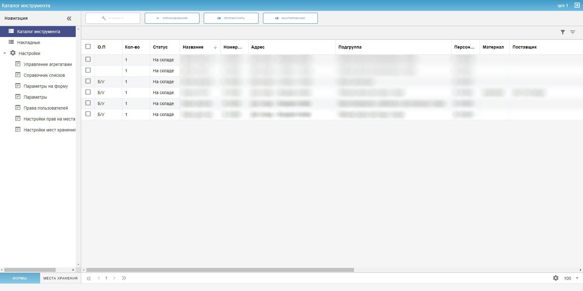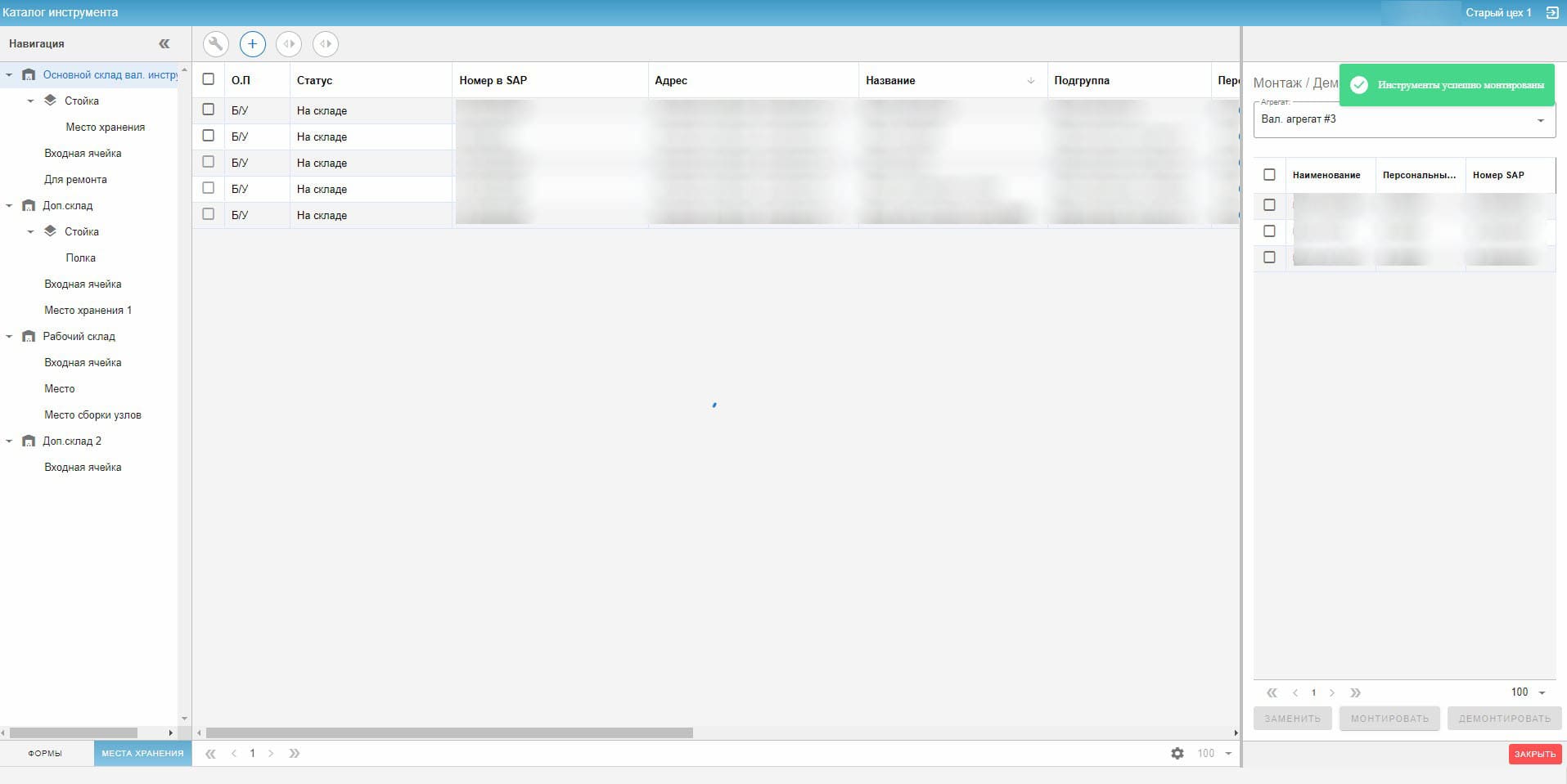 Управление складами инструмента как централизованными для выдачи на рабочие места, так и непосредственно на рабочем месте