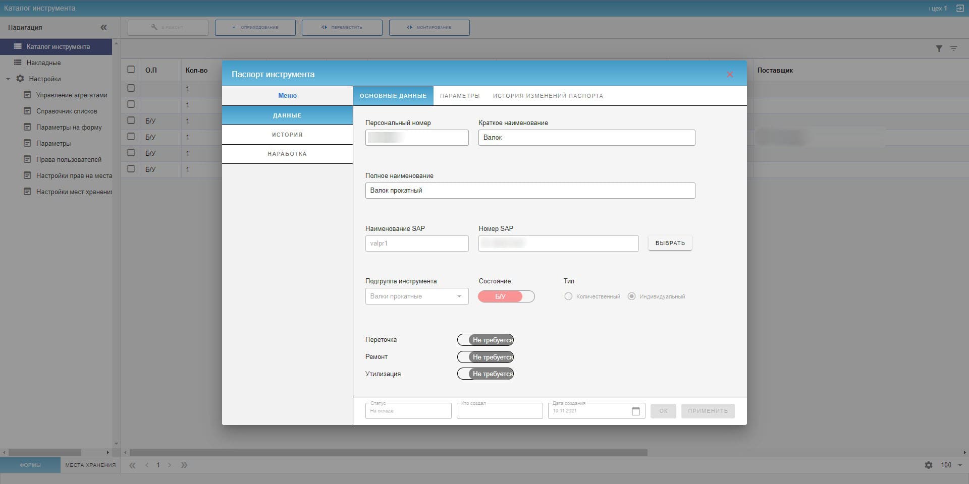 Разработана система учёта и управления сменным оборудованием и инструментами деформации для сбора и обработки информации по наработке инструмента