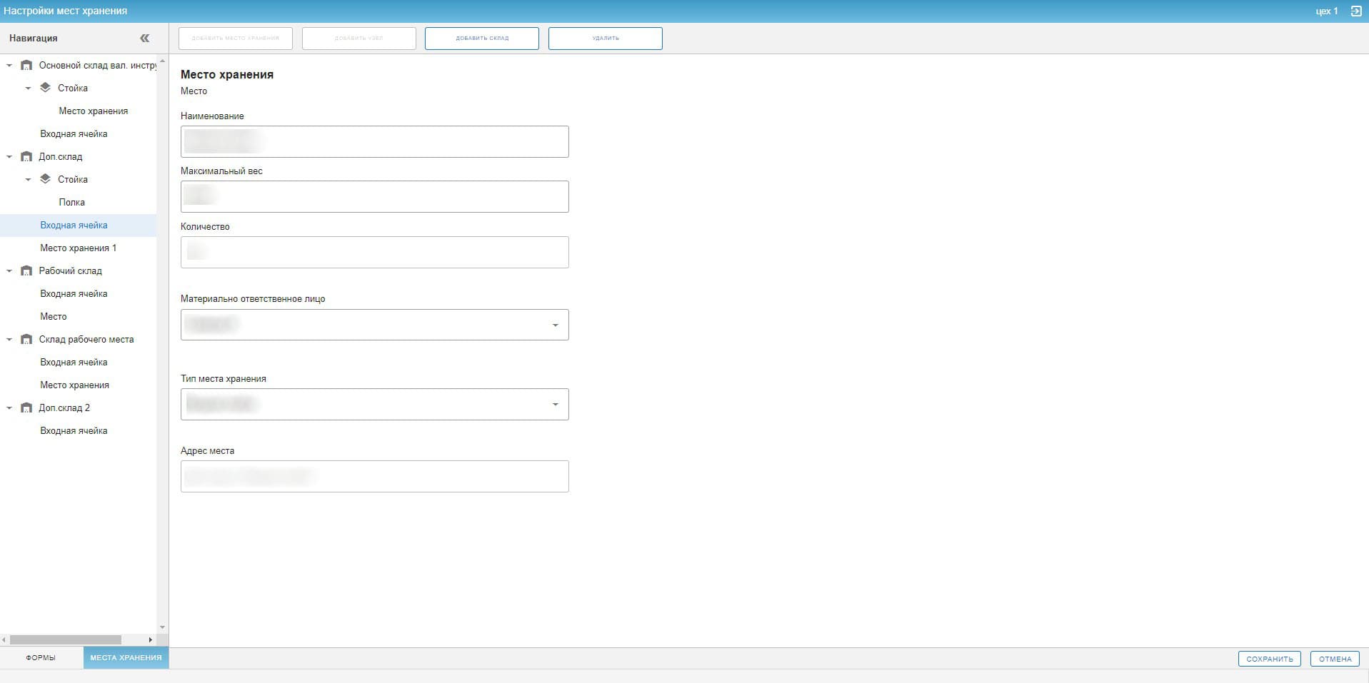 Создание электронной карты склада в рамках цеха: склады, места хранения, узлы