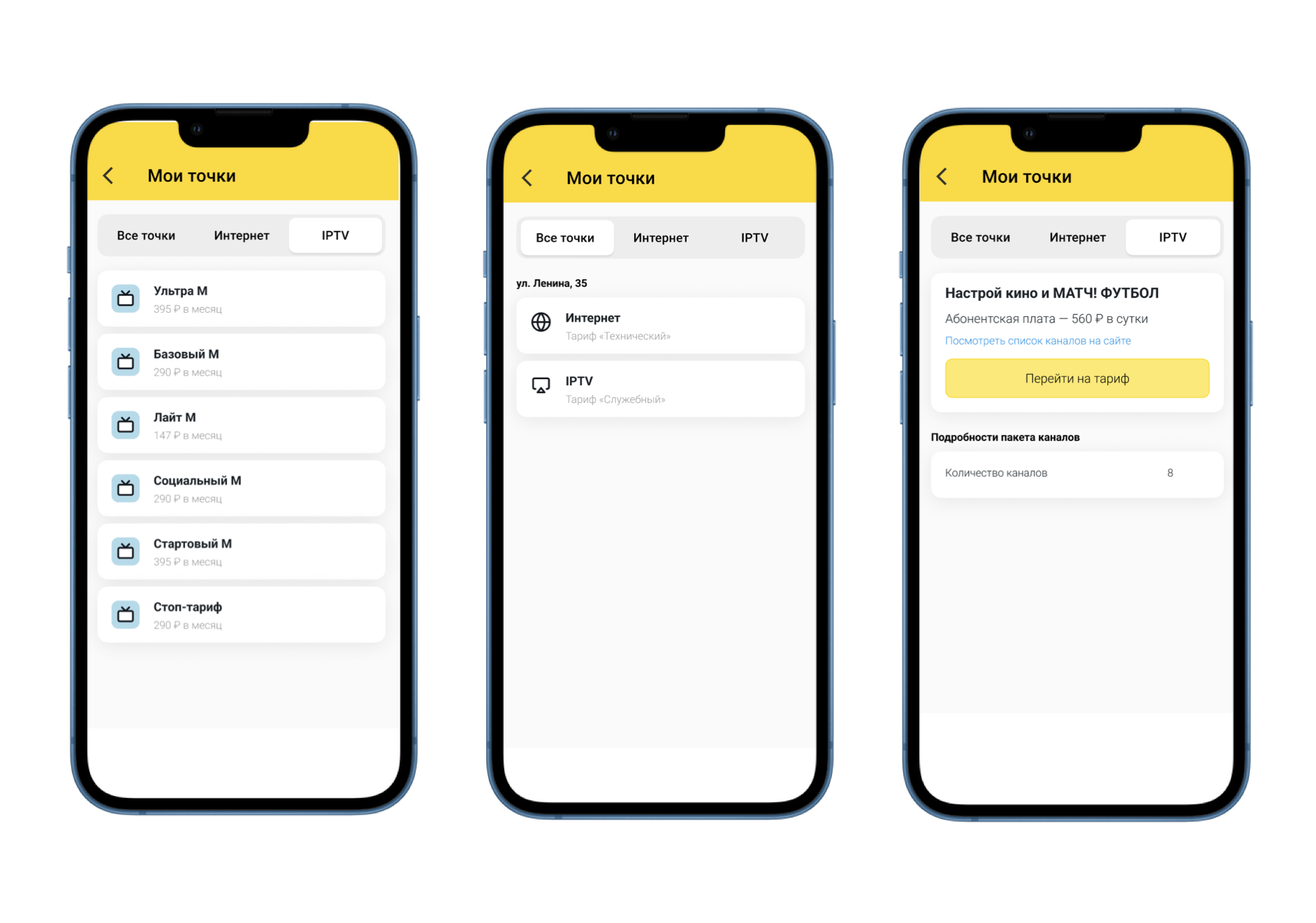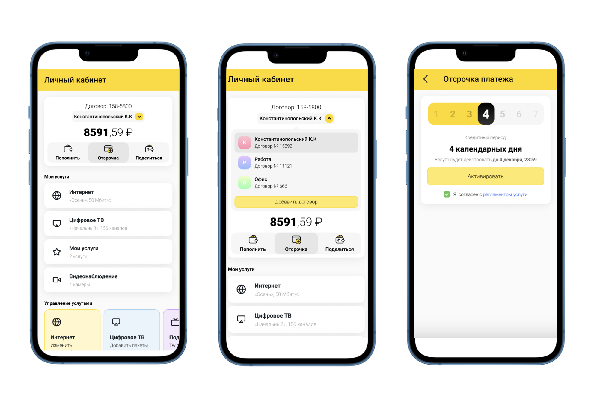 С помощью приложения клиенты сети могут пополнять счет, изменять условия тарифа, управлять услугами доступа в интернет, подключить цифровое ТВ и выбирать пакеты каналов, подключаться к камерам видеонаблюдения, общаться в чате с поддержкой компании.