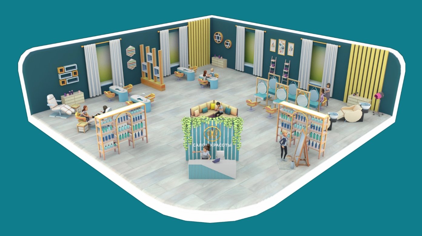 Настройка площади помещения (маленькая, средняя или большая на выбор; площадь влияет на визуальную величину салона в рамках игры, а также на максимально возможное кол-во работающих сотрудников)
